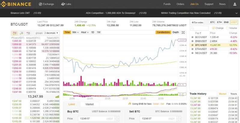 Voordat je kunt beginnen met traden zul je moeten zorgen dat er coins on je Binance account staan. Je start met bitcoins, ethers of USDT (tether). Andere coins welke verkrijgbaar zijn betaal je dus met bitcoins, ethers of tether. De lijst met verhandelbare munten is lang en wisselt ook regelmatig. Een greep uit het aanbod: IOTA, Bitcoin, Ethereum, Litecoin, Decentraland, Ethereum Classic, Monero, EOS, OmiseGO, NEO, Dash, Zcash, Ripple, Storj, Tron en Cardano.