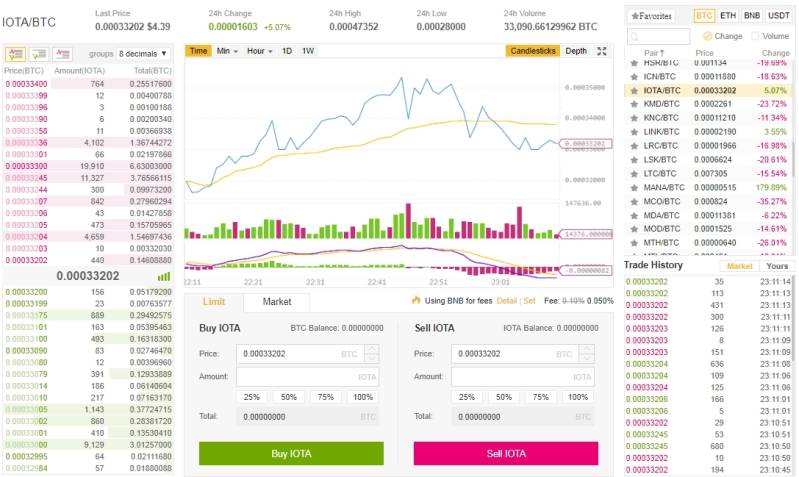 5. Nadat je op 'IOTA-BTC' hebt geklikt kom je in het volgende scherm: