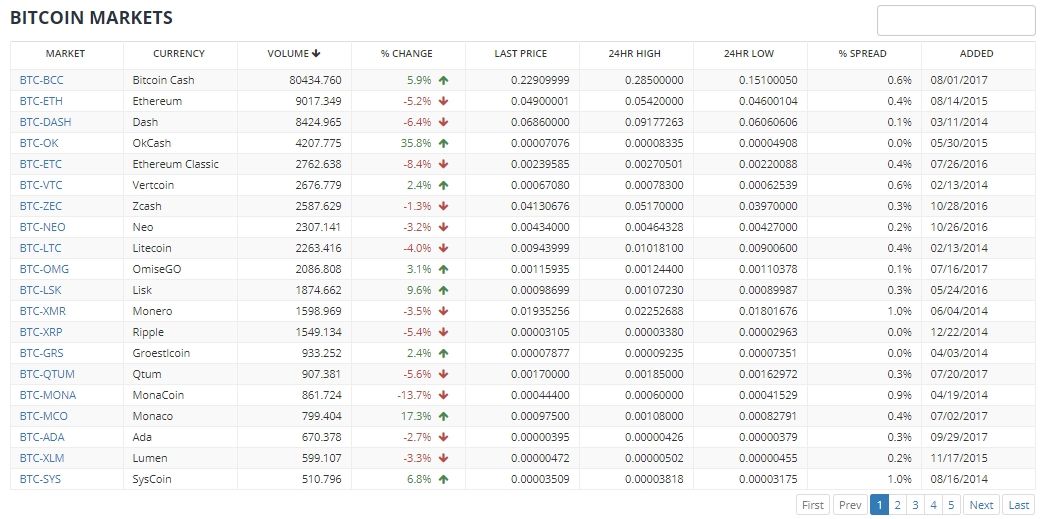 2. Boek andere valuta die je in je bezit hebt over naar Bittrex en verhandel ze daar voor bitcoins of ethers.