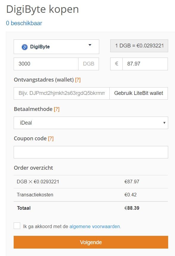 Volg onderstaande stappen om Digibyte te kopen via LiteBit.