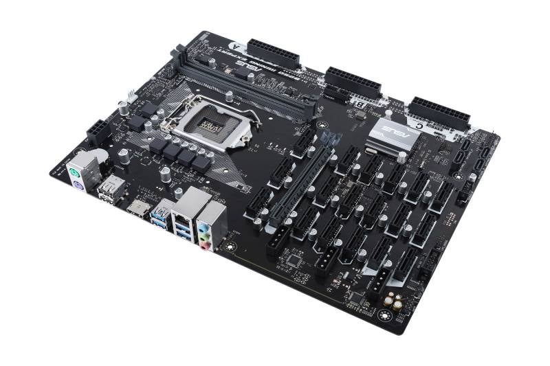 Asus heeft een moederbord met Intel B250-chipset gepresenteerd dat is voorzien van 19 pci-e-slots. Volgens Asus is het mogelijk om acht kaarten van zowel Nvidia als AMD te combineren, voor een totaal van zestien.