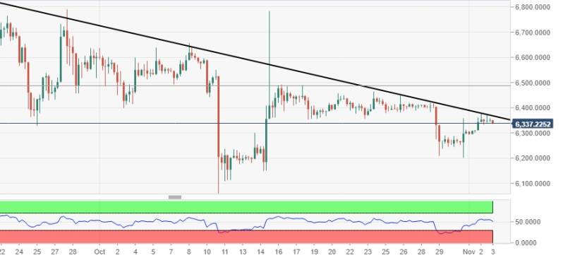 Maar voordat het op de daily chart uitbreekt, is er ook een dalende trendlijnresistentie in de 360-minuten grafiek. Om de bulls te laten uitkomen voor zowel de korte als de lange termijn moeten ze voorbij $ 6.450 komen en $ 6.800 aanhouden voordat een zinvolle rally wordt hervat. Doelwit voor deze dalende wig break-out is $ 12.000.