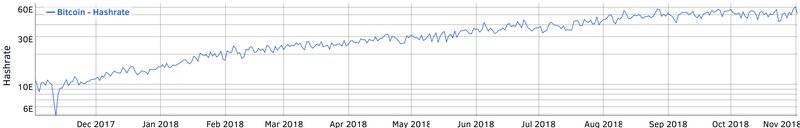 Dat verhaal lijkt in overeenstemming te zijn met de gegevens: de dramatische toename van hashrate in 2018, van ten minste 500%, lijkt enigszins te zijn geëgaliseerd zoals te zien in de bovenstaande grafiek. Terwijl de prijs van bitcoin kelderde en consolideerde rond het bereik van $6000 vanaf hoogtes van meer dan $19.000. Meer hashrate voor minder dollarrendement zou gemakkelijk naar meer concurrentie kunnen vertalen.