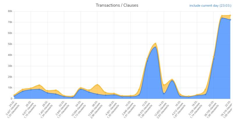 De activiteit van My Story™ zien we ook terug op het mainnet. Waar het aantal transacties lange tijd tussen de 5.000 en 10.000 per dag lag met een enkele uitschieter naar boven, lijkt er nu een sprint ingezet. Afgelopen twee dagen waren er meer dan 76.000 transacties op het VeChain netwerk, en vandaag wordt dit zelfs ruim overtroffen aangezien de teller aan het eind van de middag al op ruim 72.000 transacties staat (Bron: vechainstats.com)